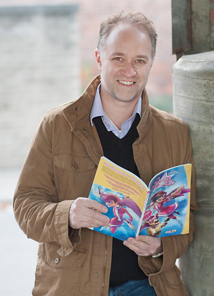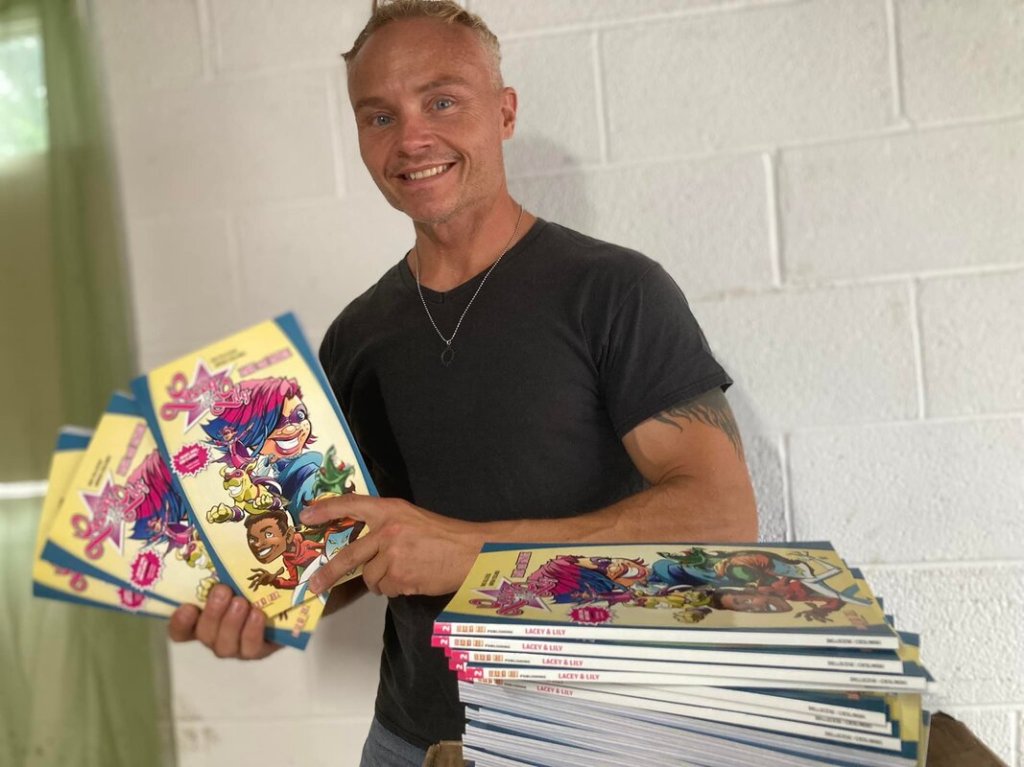 He is the co-creator and writer of the all-ages graphic novel series Lacey & Lily from Darby Pop Publishing, co-creator and writer of the adult comedy series Holidaze, has written prose for AHOY Comics, and is the author of the children’s books The Little Lamp, Lucy and the Ghost take the Stage, and Look Out! Here Comes…the Mope!